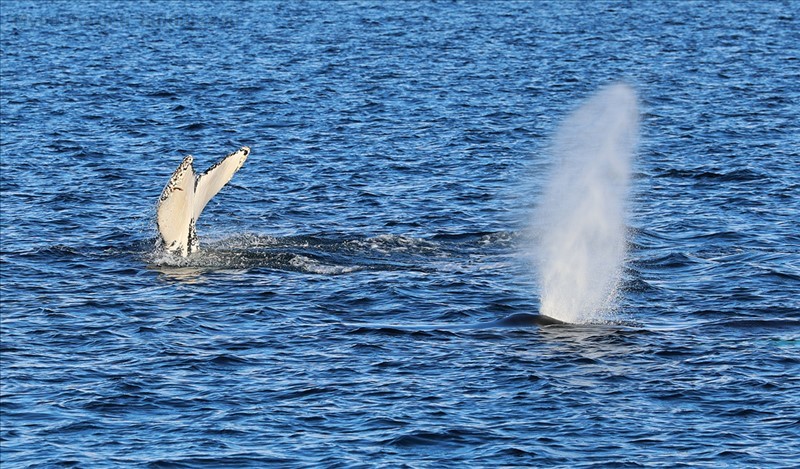 Hnúfubakar annar i djúpköfun og hinn að anda frá sér mynd þorgeir Baldursson