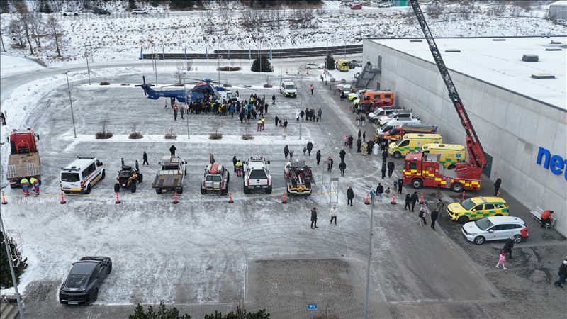 TF Gná ásamt viðbragðsaðilum á bilastæðinu við Gleráartorg mynd þorgeir Baldursson