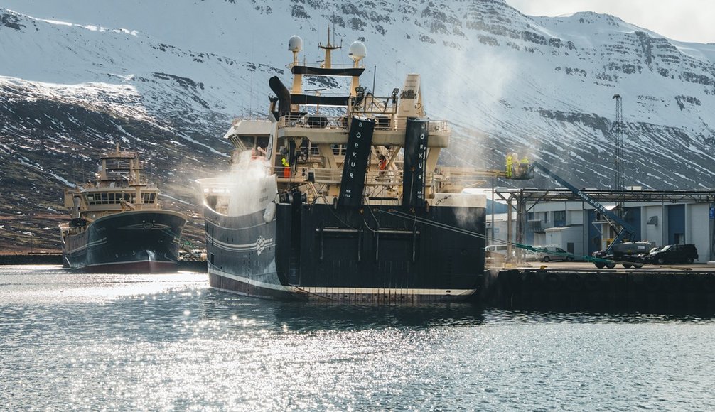 Það er spúlað og skrúbbað til að undirbúa fyrir veiðar á kolmunna.