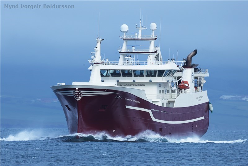 Vilhelm Þorsteinsson EA 11 á leið á Kolmunnaveðar mynd þorgeir Baldursson