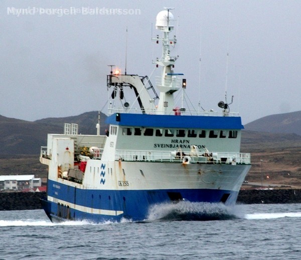 "Í lok þessa árs keypti Þorbjörn hf. frystitogarann Snæfell EA frá Hrísey og var útgerðinni ekki spáð vel hvað það skip varðaði. Þótti mörgum þetta vera feigðarflan hjá þeim feðgum. Þeir gáfu skipinu nafnið Hrafn Sveinbjarnarson GK 255, nafn sem verið hafði með útgerðinni alveg frá upphafi. Þetta var nýsmíði, búin fullkomnustu siglingartækjum og öðrum tækjum bæði til siglingar og vinnslu. Glæsilegasta skip sem hefði mátt vera nokkrum metrum lengra auk þess sem það var kvótalítið þannig að Hríseyingar réðu ekkert við að reka það. Þorbjörninn fékk 1.200 þorskígildistonn með því sem þótti ekki mikið fyrir vinnsluskip en á móti átti útgerðin töluvert af ufsa- og karfakvóta sem ekki nýttist í saltfiskvinnsluna. Ljóst var að vinnsla fyrirtækisins væri að færast meira út á sjó í ljósi breyttra skilyrða í þjóðfélaginu á þessum tíma.